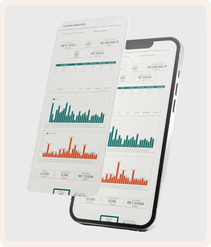 Definimos o ROAS mínimo lucrativo por produto e exibimos tudo em um dashboard 24/7. Você sabe, a qualquer momento, se cada real investido está gerando caixa ou queimando margem.